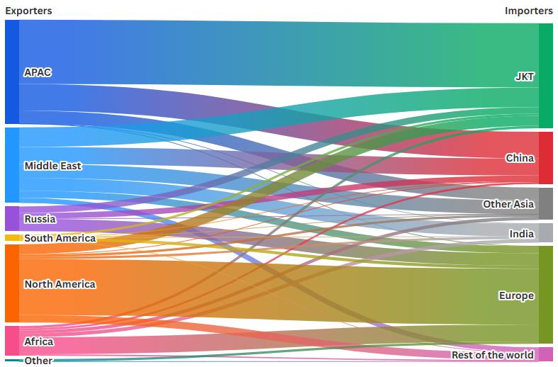 • The majority of Asian demand reduction came from China, which saw an 11% year-on-year reduction, primarily due to lower demand and stronger supply from other sources in the first half of the year