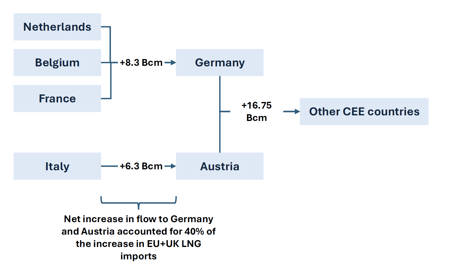 • Germany also saw one of the largest year-on-year increases in LNG imports, which, together with stronger imports from NW European LNG importers, reinforced its role in enabling CEE countries to access higher LNG imports
