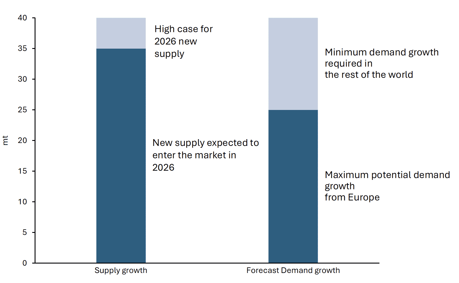 LNG supply reached 435 mt in 2025 – higher European imports required a reduction in Chinese demand, preventing a material price decline
