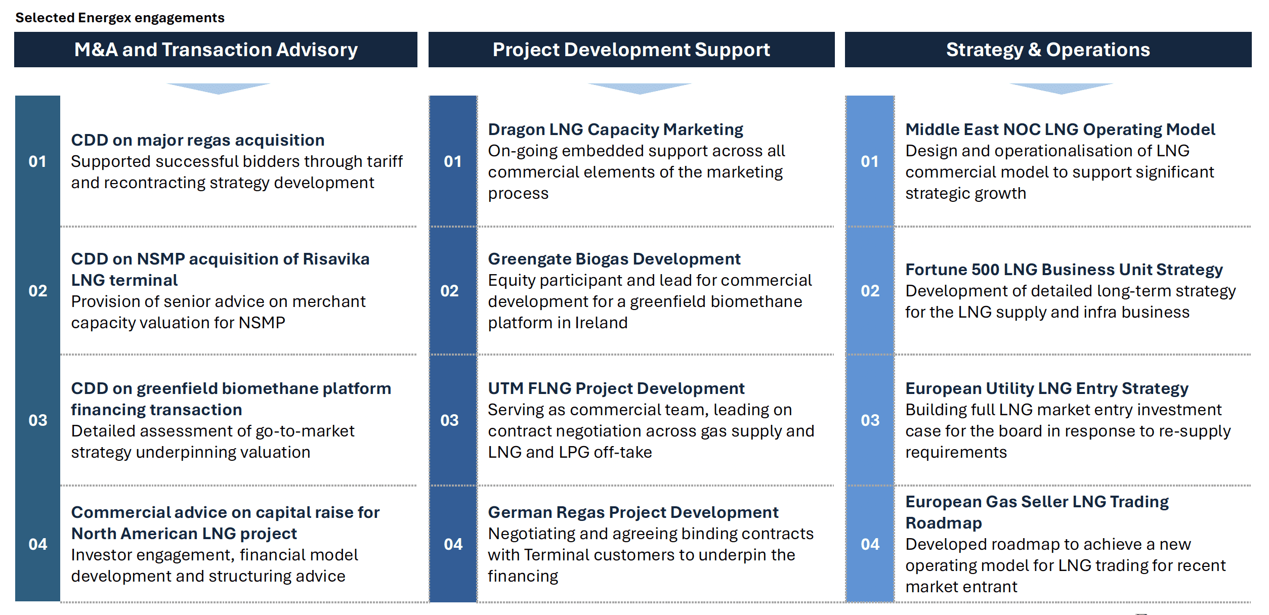 Energex is known for our hands-on work for clients on significant strategic initiatives and major transactions across the gas, LNG and biogas value chains
